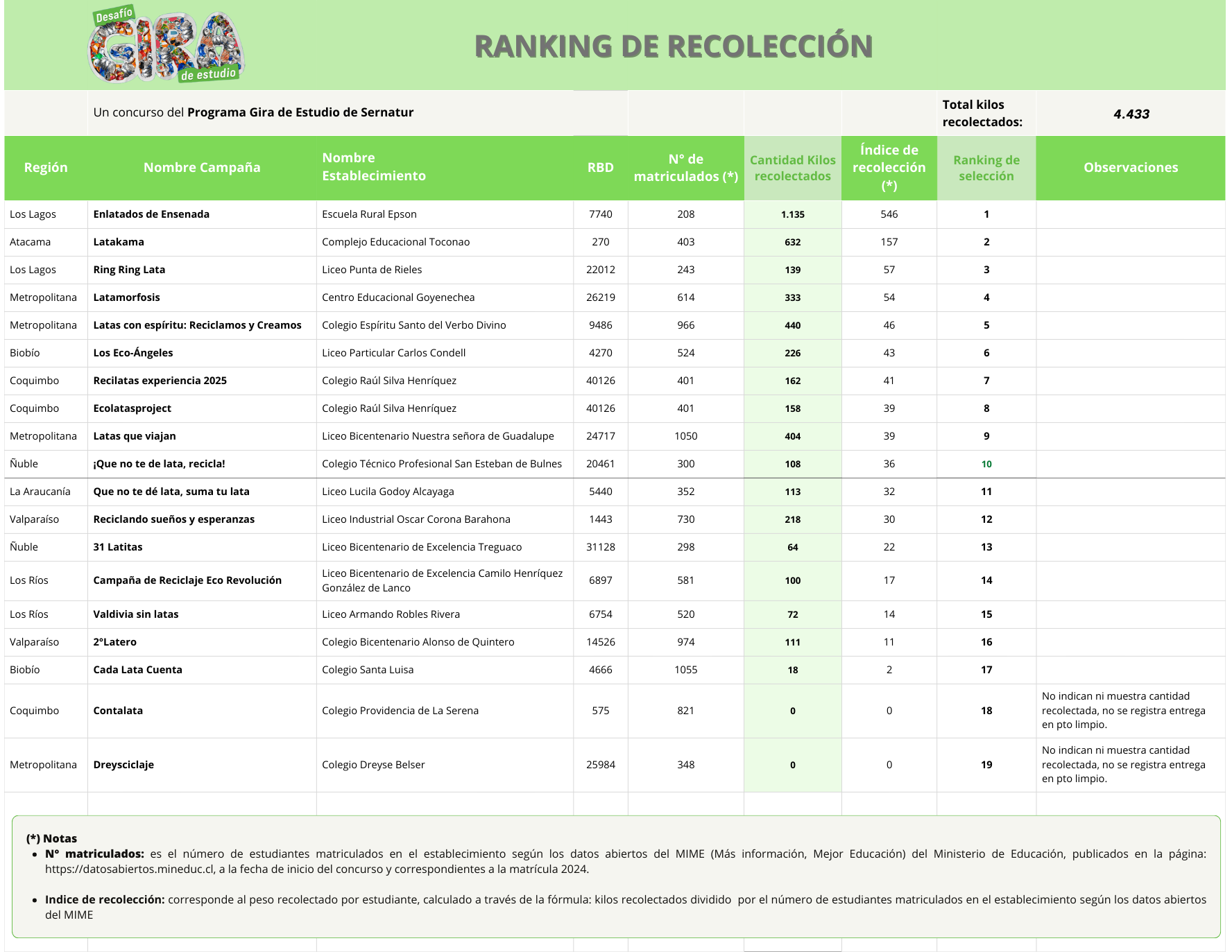 RANKING DE RECOLECCIÓN